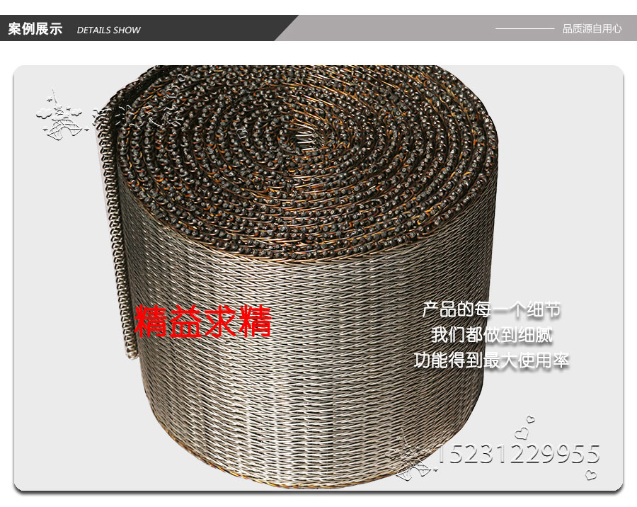 不銹鋼網帶屬于非標準件,我們將根據你提供的規格長寬,材質,絲徑,編制結構尺寸,支軸直徑,支軸間距,鏈條型號等數據核算成本和制作.