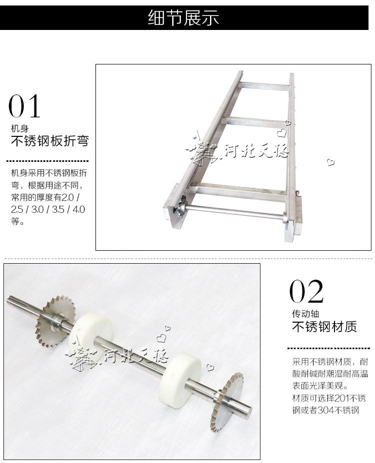 應用行業有:食品加工、速凍加工、設備組裝、金屬件輸送、機床排屑,況且在這些行業中對鏈板輸送機的使用型號也不一樣。平頂鏈板式輸送機適合高速輕型產品輸送機;折彎鏈板式輸送機適合重型、體積大產品輸送;合頁鏈板式輸送機適合稍重、細小產品輸送。大家在購買時一定注意要根據自己產品來選型。