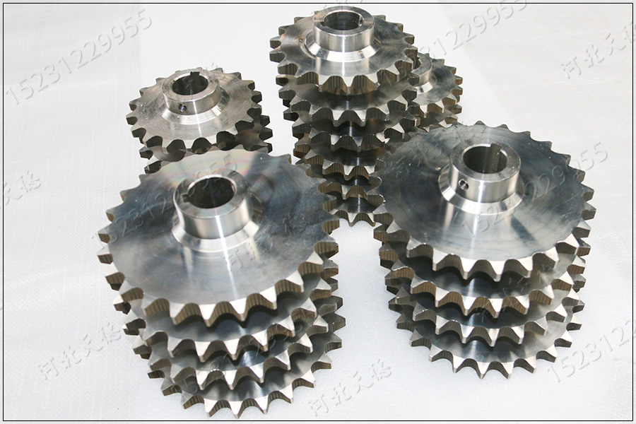 鏈輪是由鏈條驅動的,通常在英制單位。有單行、雙行和多行。適用于低速、重載、高溫等工況。與齒輪相比,它可用于雙軸中 心。